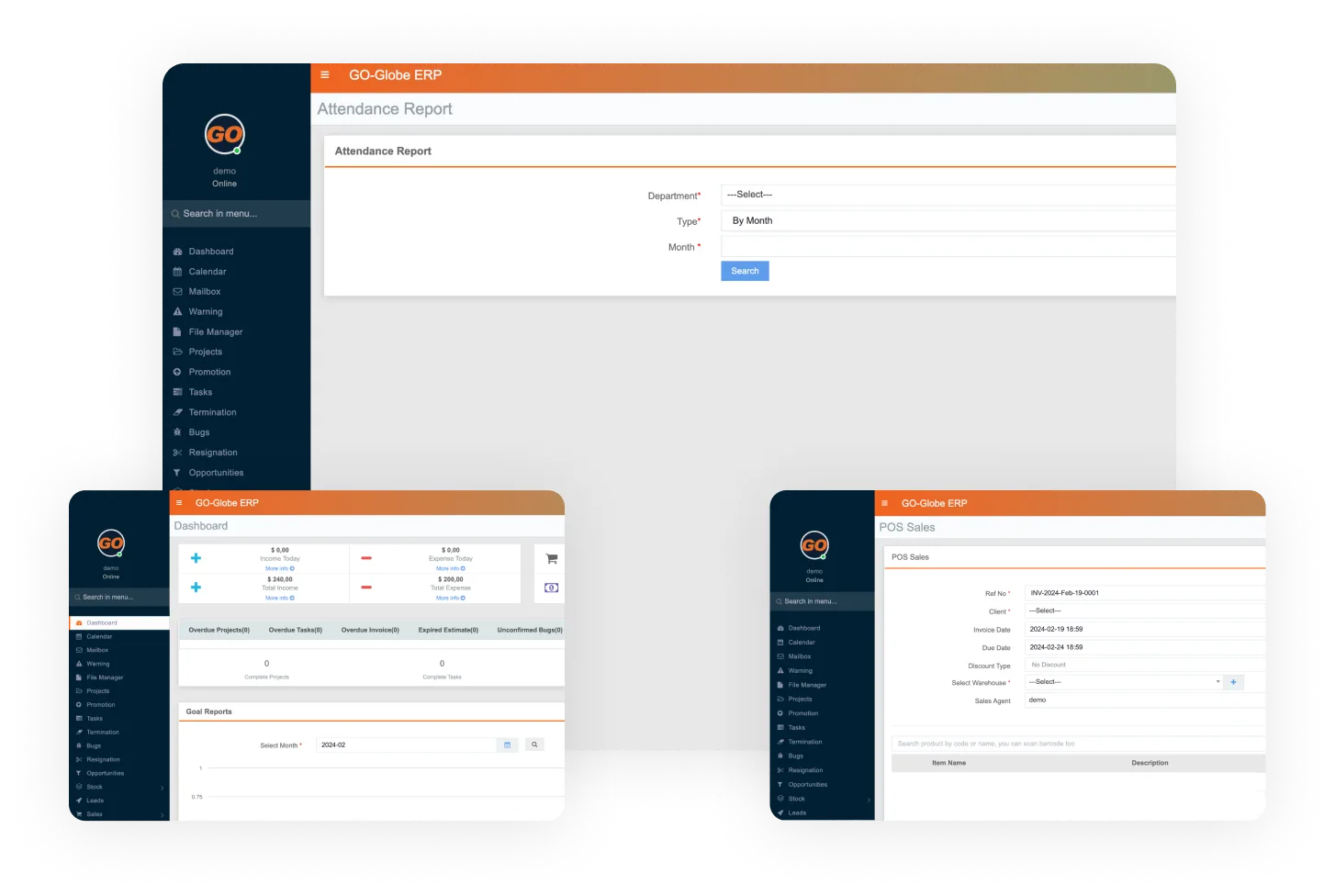 • Sweeten Company Performance and Visibility: You can get a real-time vision of your processes with GO-Globe’s ERP software. With better decision-making and spot inefficiencies, our system ensures your firm is constantly working at its best.