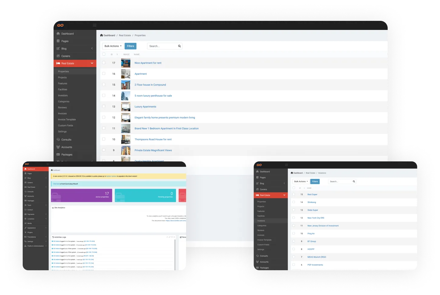 Introducing our advanced Real Estate Listing Website, a comprehensive system designed to efficiently manage diverse aspects of the real estate industry. From overseeing properties, facilities, and features to managing investors, categories, reviews, and invoices, our platform encompasses robust functionalities such as account management, package offerings, payment processing, location tracking, agent management, news updates, and seamless property management, including property addition and listing. With a focus on enhancing the user experience and operational efficiency, our system is tailored to meet the distinct needs of real estate professionals and clients alike, offering a seamless and comprehensive real estate management experience.