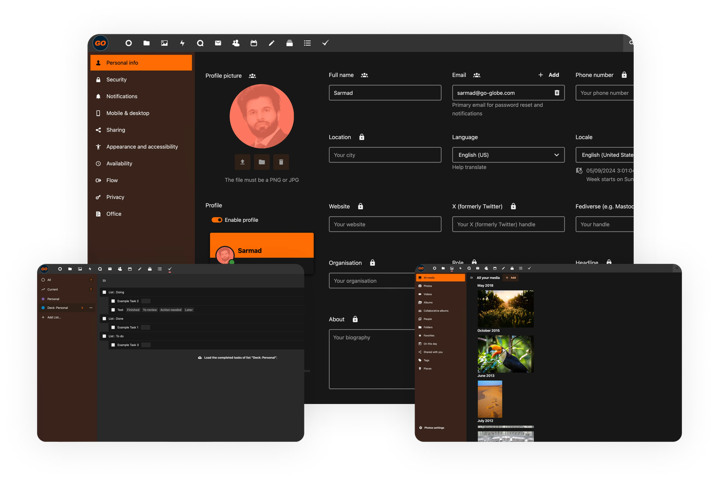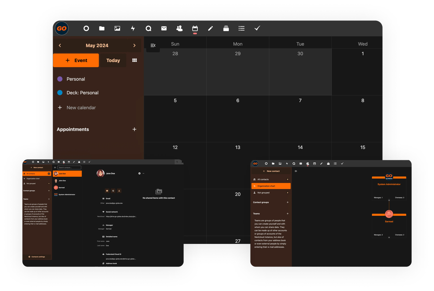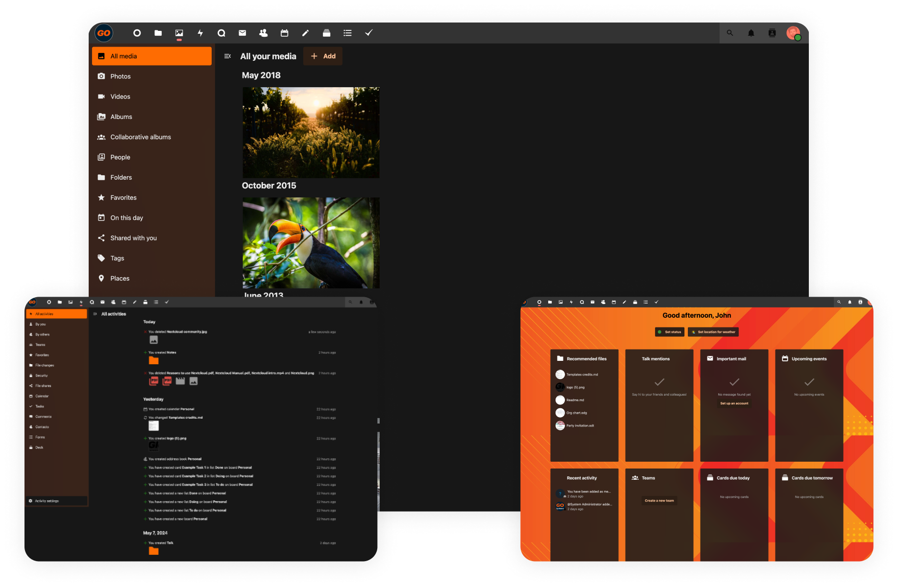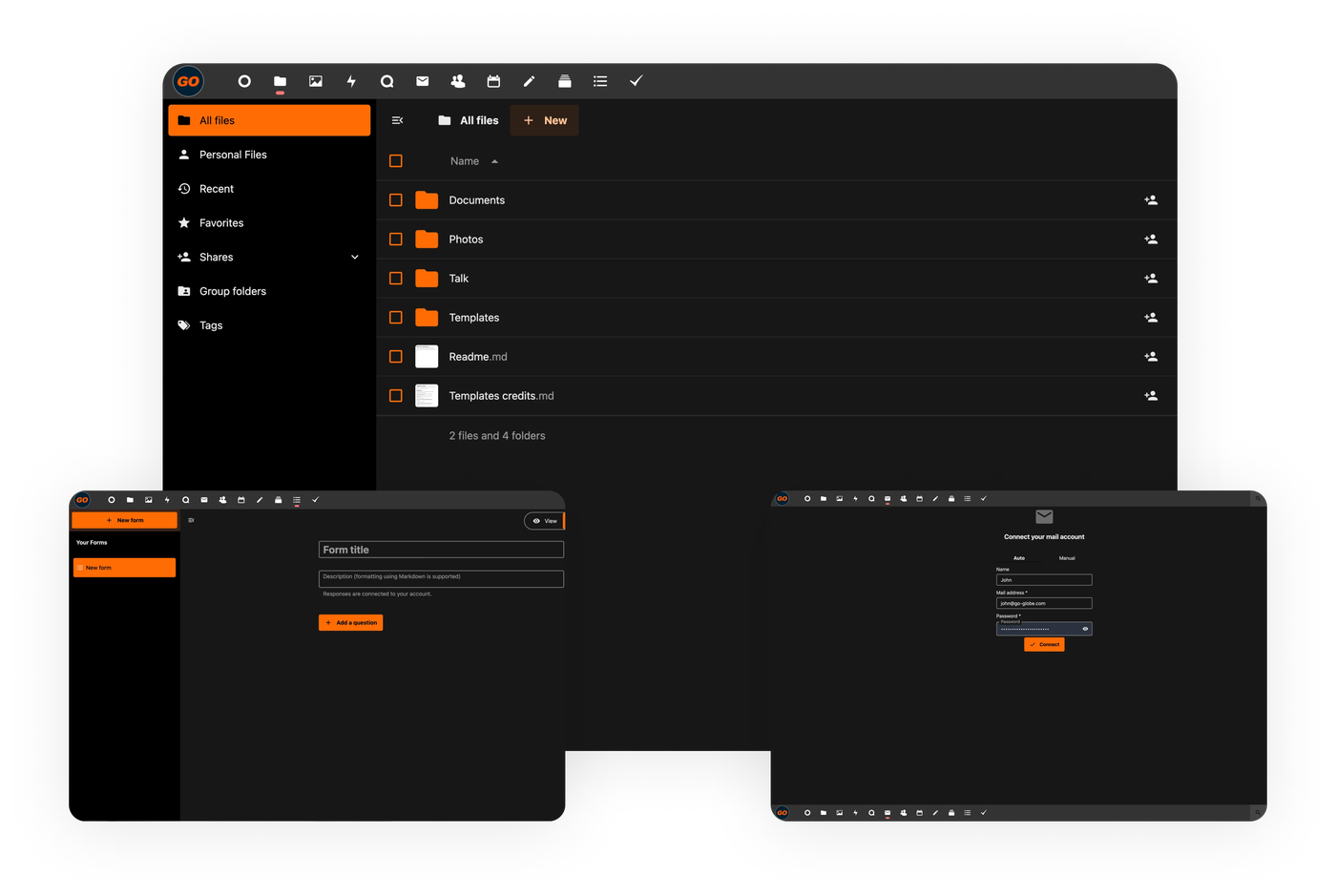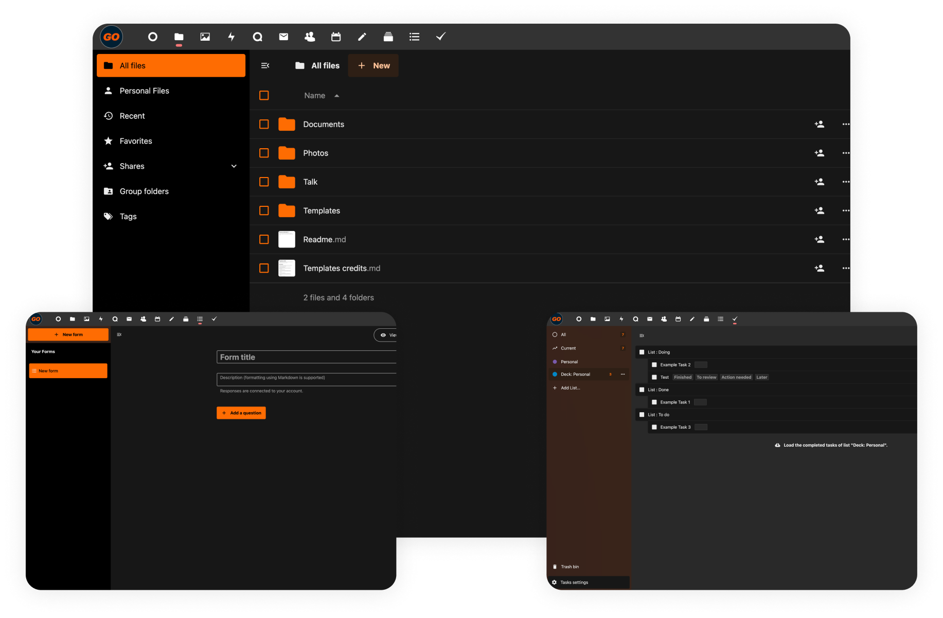 It also includes communication tools like integrated mail and chatcontact managementcalendar and scheduling for important events, and a notes feature for managing ideas and documents. Users can create presentations with the deck feature, gather data with custom forms, and manage tasks across teams, making GO CloudDrive an ideal solution for streamlined digital asset management and collaboration.